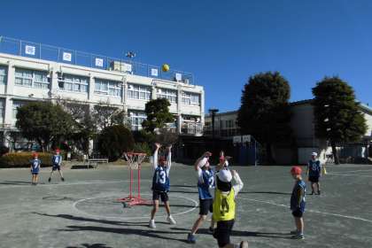 リコーブラックラムズさんに教えていただいた「タグラグビー」とバスケットボール型の球技「セストボール」に取り組んでいます。どちらも作戦をしっかりと考え、チームが勝てるように頑張っています。みんなとても楽しそうです。