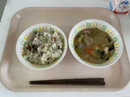 節分ごはんは、大豆に片栗粉をまぶしてカリッと揚げて、甘辛いタレと青のりで和えてから、ごはんに混ぜ合わせて作りました。つみれ汁は、食べやすいように、イワシのすり身とタラのすり身を合わせて、味噌など調味料を加えて、出汁の中に摘み入れました。