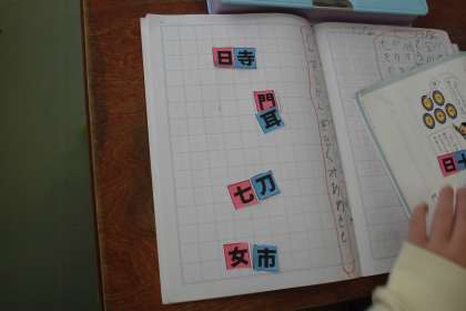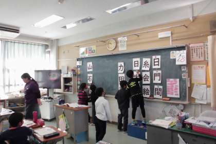 今日は習った感じを組わせて「合体漢字」に挑戦しました。門+耳=聞、女+市=姉などと、組み合わせていきました。この時間の最後には、オリジナル問題「口+玉=組」も作り、発表しました。楽しく漢字の学習を進めることができました。