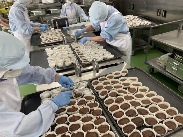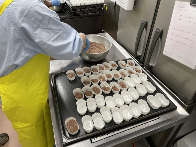 ブラウニーは、絹豆腐、米粉、ココアなどを使って作りました。材料を混ぜ合わせて、型に分け入れて、オーブンで焼きました。中はしっとりもちもちで、表面は少しカリッとして、美味しく出来上がりました。おかわりジャンケンが白熱していました。今日のおたよりにレシピを載せています。写真に撮ってお家でも作ってみてください。