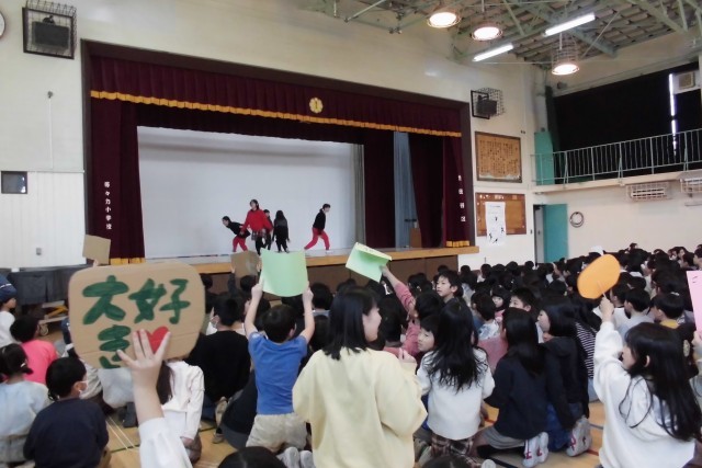 今日の昼休みは、ダンスクラブの発表会が行われました。1年間練習してきたダンスをキレキレで披露してくれました。友達を応援するための、押しグッズを作ってくれた子もいて、みんなでプラカード掲げながら応援しました。体育館がダンススタジオになり、大盛り上がりでした。ダンスクラブは明後日2月16日日曜日の「とどろき冬まつり」にも出演してくれます。みなさん応援してくださると嬉しいです。また、とどろき冬まつりでは、その他にも、子どもたちが登場して祭りを盛り上げてくれます。楽しみにしていてください。
