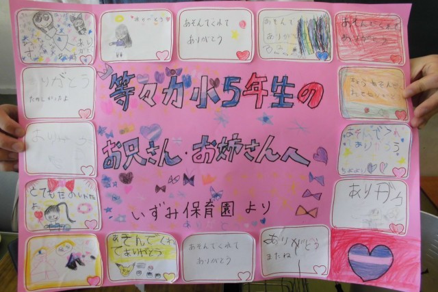 先日、5年生と交流をした、保育園さんから5年生あてにお礼のお手紙が届きました。受け取った5年生は、かわいいお手紙を見てとっても嬉しそうでした。ありがとうございました。