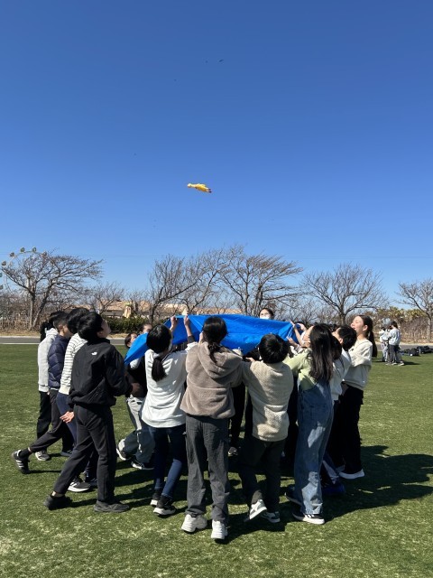 アスレチック以外のチームはワークショップ。今日のテーマ「3つの輪 会話 平和 輪」を目指して様々なミッションに挑戦しました。協力してミッションクリアし笑顔いっぱいです。