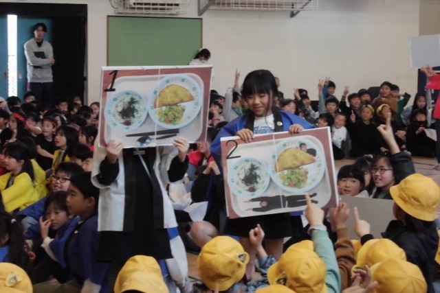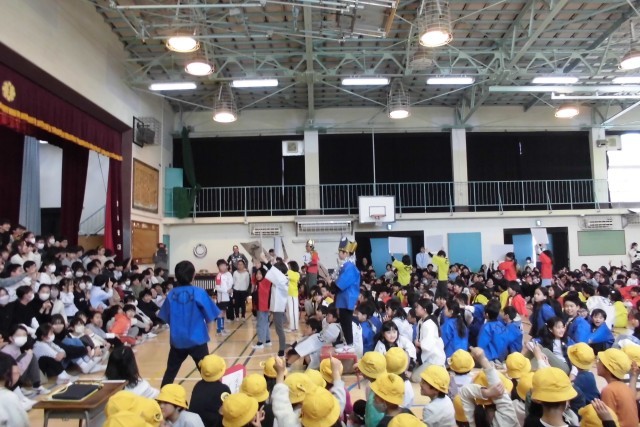 3年生の出し物では、再び牛魔王たちが現れました。そして、中学生免許をもらった6年生も登場!楽しいクイズもあり、盛り上がりました。