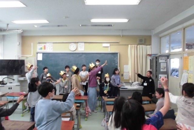 6年生を送る会の後はキッズタイム。今年1年間一緒に遊んでくれた6年生に感謝のお手紙や王冠、メダルをプレゼントしました。ちょっと照れ臭そうに受け取っていた6年生。最後にみんなで遊びました。進行をしてくれた5年生のみなさんありがとうございました。