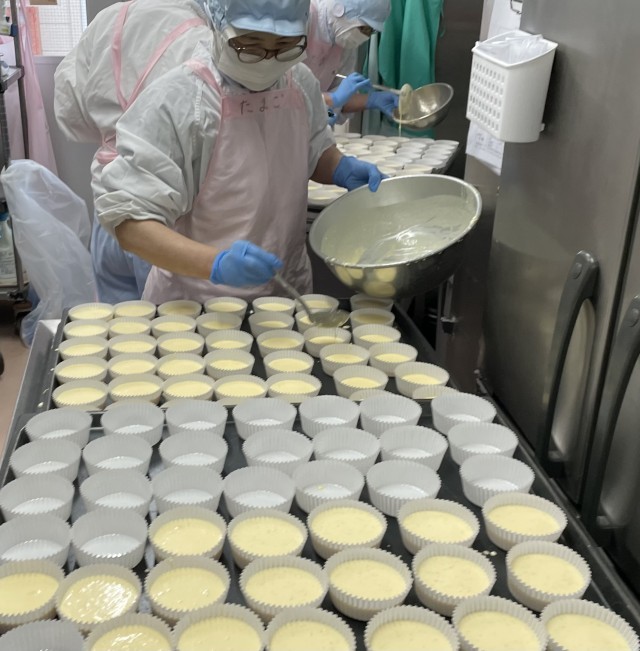 チーズケーキは、クリームチーズと生クリームをたっぷり使って、しっとり美味しく焼き上がりました。おかわりジャンケンが白熱していました。サラダの明日葉は、東京都三宅島産の明日葉が届きました。特製ドレッシングと、たっぷりのツナと一緒に大根やきゅうりと和えたので、美味しく出来上がりました。しそのように感じで、美味しく食べている子もいました。