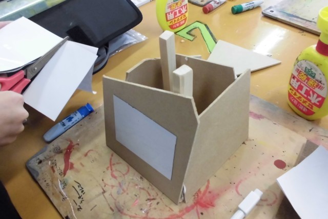 「つくって つかって たのしんで」の作品作りも大詰めです。かわいいキャラクターのように仕上げた子、面白い形に組み立てた子、使いやすく実用的なものを作った子など様々です。完成後は持ち帰りますので、すてきな作品をご家庭でも使ってください。