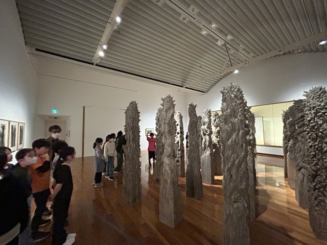 4年生が世田谷美術館に来ています。初めて来た子も多く、様々な作品を楽しんでいます。美術館は人が体と心で作った作品を守る場所、そして、作品を楽しむ場所というお話が印象的でした。グループごとにボランティアの鑑賞リーダーがついてくださったので、作品の解説を聞きながら鑑賞を楽しめました。世田谷美術館の皆様ありがとうございました。