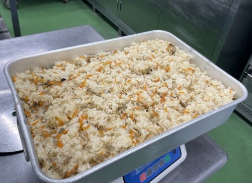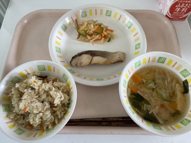 今日は、かむかむ給食の日でした。ごぼうや切干大根、スルメいかなど、かみごたえのある食材を使いました。きんぴらごはんは、ごぼうとにんじん、鶏肉などを炒め煮てから、ごはんと合わせて作りました。甘辛い味付けで、一味唐辛子を少し加えてほんのりピリ辛味の混ぜご飯です。味噌汁は、歯応えを残して仕上げた切干大根が、パリパリとして美味しく出来上がりました。かみかみサラダは、大根、にんじん、きゅうりと一緒に、茹でたスルメいかの細切りを和えて作りました。