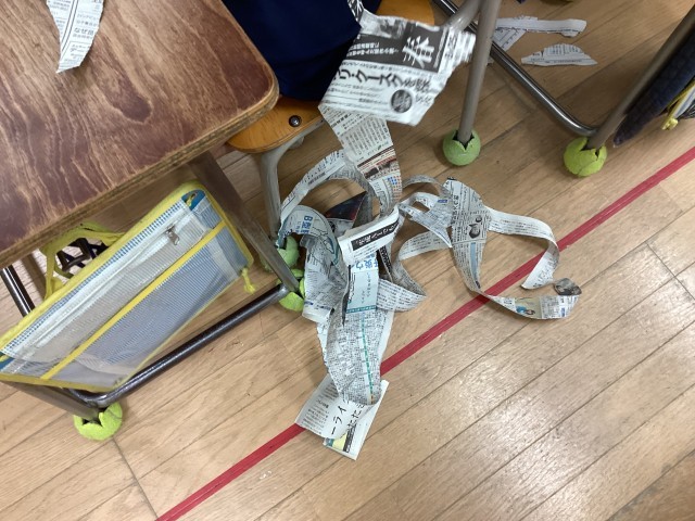 新しいクラスで学習が始まり2日目となりました。学校のきまりやクラスのきまりを確認したり、キャリアパスポートを作成したりと大忙しの子どもたちですが、ちょっと一息。新聞紙をどれだけ長くちぎれるかゲームを行いました。力加減が難しく苦戦している子もいましたが、「ゆっくりちぎるといいよ。」「細くちぎると長くなるよ。」とアドバイスをし合いました。長さを比べ合い、なんと5mを超える子もいました。みんな楽しそうに活動をすることができました。