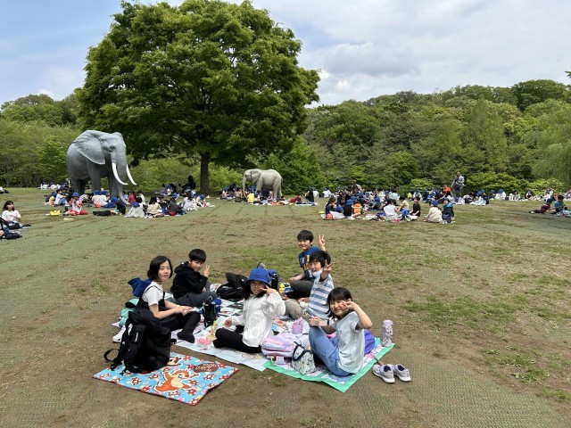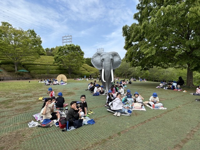 待ちに待ったお弁当タイム。みんな美味しくてご機嫌です。ゾウさんと一緒に食べました。ご準備ありがとうございました。