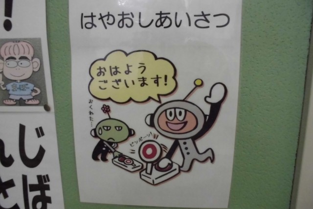 「あいさつは何のためにすると思いますか?朝の『おはようございます』のあいさつだけでもいろいろな意味があると思います。相手が『友達』だったら、どう?今日もなかよくしてね。今日は元気?一緒に頑張ろうね。などの意味があるでしょう。相手が『先生方』だったら、今日も一日よろしくお願いします。楽しく生活しましょう。相手が『お客様』だったら、ようこそ等々力小学校へ。などの意味があるでしょう。反対にあいさつの声が全くなかったらどうでしょうか?または、自分があいさつをしていて返事がなかったらどうでしょう?寂しい気持ちや悲しい気持ちになりますね。周りの人からあいさつの声をかけてもらえるのは嬉しいですね。以前に『早押しあいさつ』の話をしましたが、友達、家族、先生方、地域の方々、お客様にもあいさつがしっかりとできる等々力小学校のみなさんでいて欲しいです。」