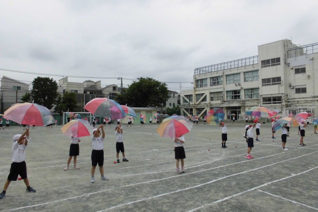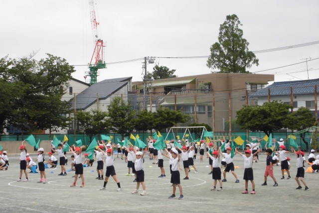 今週末に運動会を迎える等々力小学校。今日の練習では、実際に使う道具を持って練習する学年もありました。カラフルな道具を持って、更にテンション高く練習に一生懸命に取り組んでいました。