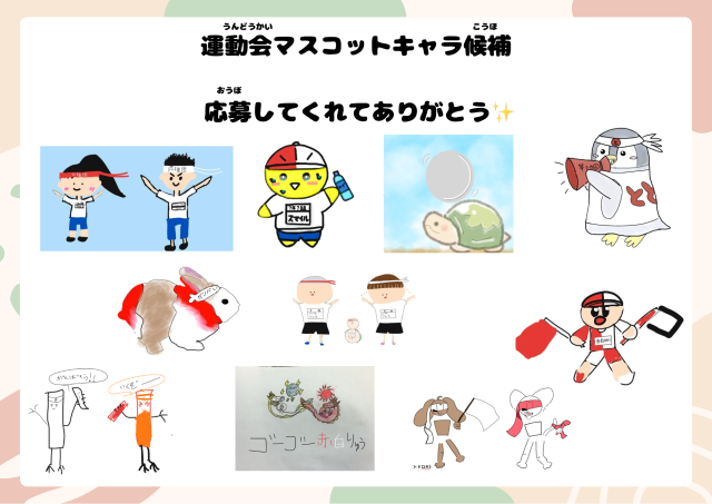 5・6年生のマスコットキャラ担当児童がマスコットキャラの候補(2枚目)を考えたり、集計や全校発表を行いました。