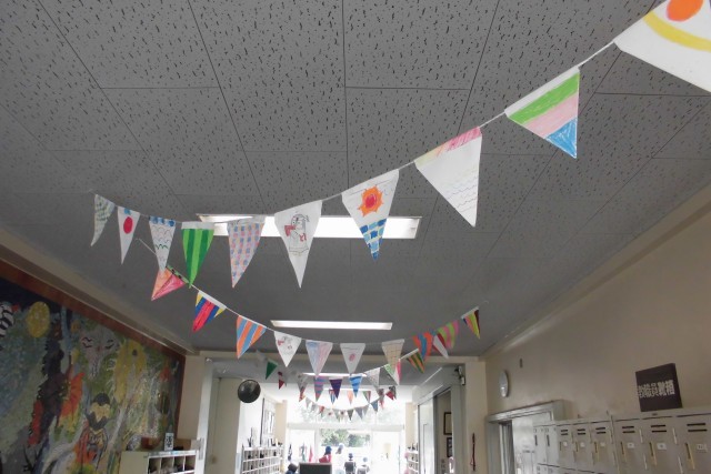 今週末に運動会を迎える等々力小学校。昨日はマスコットキャラクターを紹介しましたが、それぞれの委員会で運動会を盛り上げるために活動しています。日めくりカレンダーや中央昇降口の天井には、旗が飾られています。また、先日の日曜日に、青少年委員の方や保護者、地域の方々が花の植え替えをしてくれました。とってもきれいです。子どもたちの頑張り、そして、保護者、地域の皆様の支えが様々なところであり、大変うれしいです。ありがとうございます。24日晴れますように。