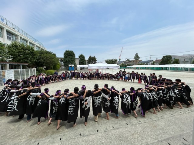 今日のリハーサルのあとの6年生です。6年生にとって小学校生活最後の運動会、これまで練習や運営面でも頑張ってきました。最後に学年で一つの輪になって、気合を入れていました。とってもすてきな場面でした。