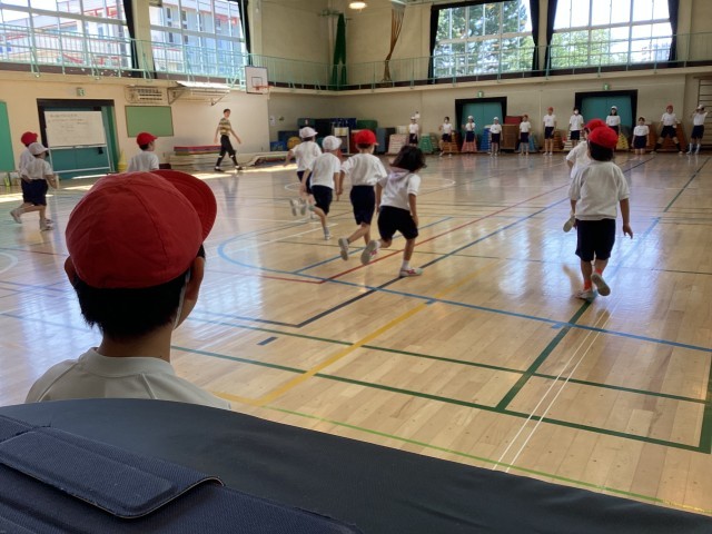 6年生が走り方の見本を見せてくれた後に、1年生は初めてのシャトルランに挑戦しました。ペースを調整してくれる6年生が「頑張れ!」と声をかけ、記録を担当していた6年生は、終わった後に「すごかったね!」「頑張ったね!」と1年生に優しく声をかけている姿が素敵でした。「ありがとうございます!」とお礼を伝えていた1年生も素敵でした。