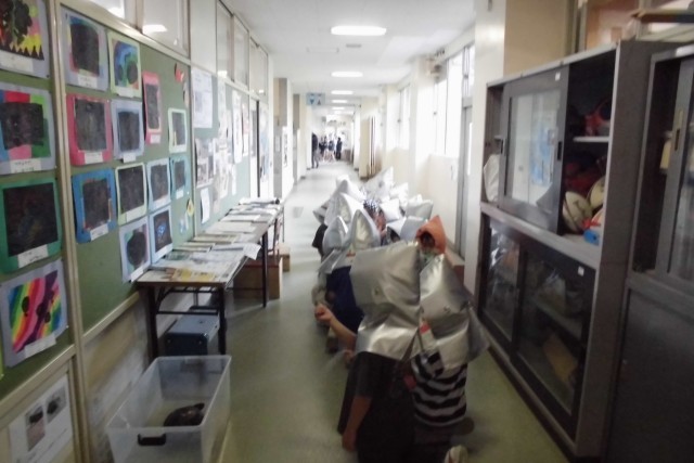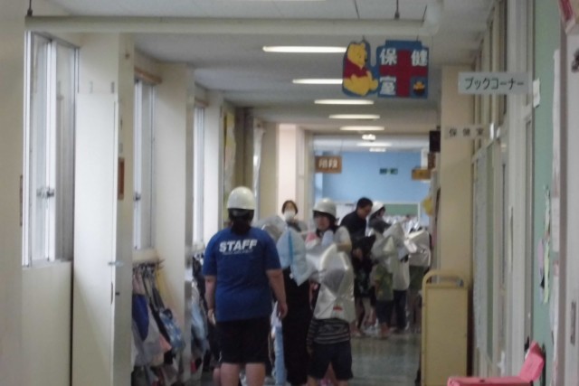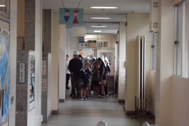 今日は家庭科室からの出火という想定で避難訓練を行いましたが、雨のため、廊下までの避難としました。いざという時の備え、清潔なハンカチの携帯が大切であるという話をしました。また、昨日計画委員のみなさんが廊下歩行についてお話をしてくれましたが、災害だけではなく、日ごろから安全に注して生活することが大切ですし、そのためには「判断・相談・挑戦」の『判断』を一人ひとりがしっかりとできるとよいですね。とお話しました。