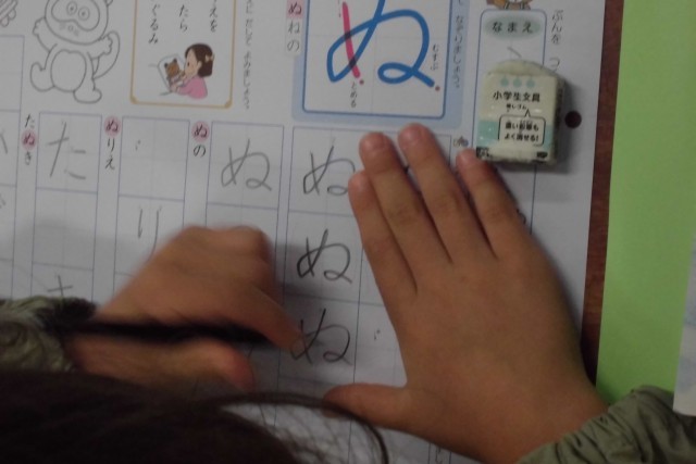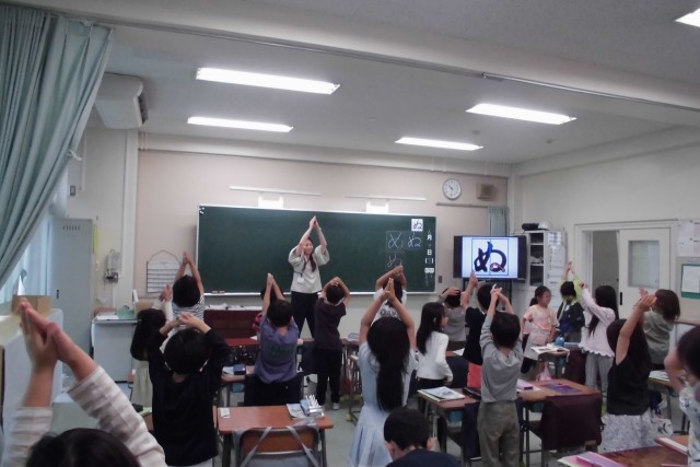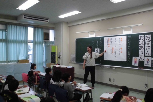 今日の国語の学習は2本立て。前半は平仮名「ぬ」の学習です。いよいよ平仮名の学習も終盤になり、形が難しい字になってきました。みんな形に気を付けながら丁寧に練習しました。後半は「おばさんとおばあさん」長音の学習です。「まほうの ほうきで そらとぶ おばさん げんきに たいそう おばあさん」どこに長音がある言葉があるかみんなで考えました。学校公開で保護者の皆様がたくさんいてちょっと緊張している子もいましたが、楽しく学習できました。