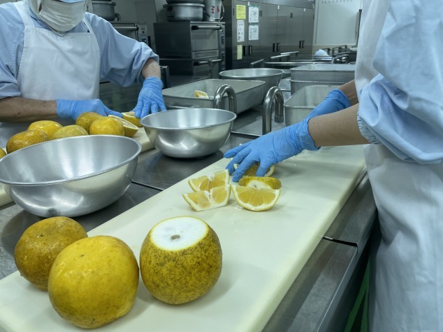 美生柑は、河内晩柑と呼ばれることもあります。今日届けてもらった美生柑は、特別栽培といって、普通の栽培方法で使う化学肥料や農薬の半分の量で育てられたものです。そのため皮があまりきれいではないものも届いています。でも味は甘酸っぱくていい香りがしてとても美味しいです。