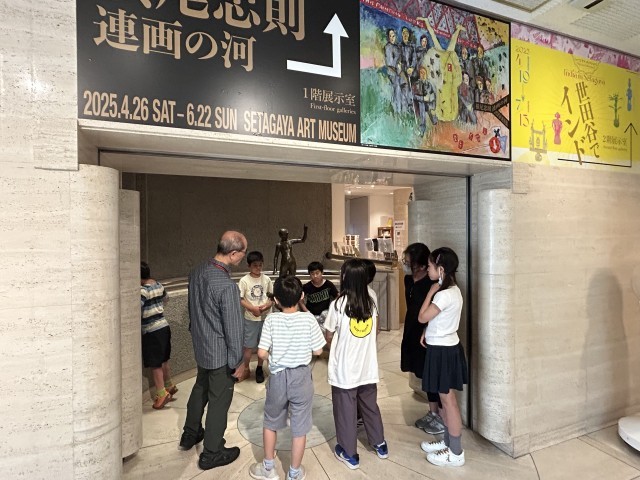 今世田谷美術館は横尾忠則さんの特別展を開催しています。みんな横尾さんの迫力のある絵を鑑賞しながら、様々な感想を語り合っています。