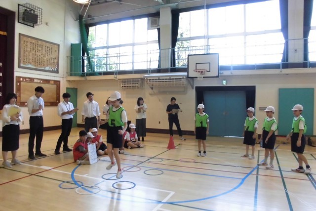 講師として、大田区立梅田小学校校長 中村 一裕先生にご来校いただき、ご指導いただきました。主体的に取り組むとはどのようなことなのか、子どもたちの欲求を満たすためには、どのようにすればよいのか。また、体育の学習だけではなく、日々の授業で大切にすべきこと、「実態把握、手立てを講じる、ねらいの達成」この3つを常に意識して授業を構成することなど、たくさんご指導いただきました。5年生の子どもたちがとてもよく動き、みんなで協力し合って取り組んでいたので、すてきなクラスですね。とお褒めの言葉をいただきました。中村先生本当にありがとうございました。そして、5年生のみなさんもありがとうございました。