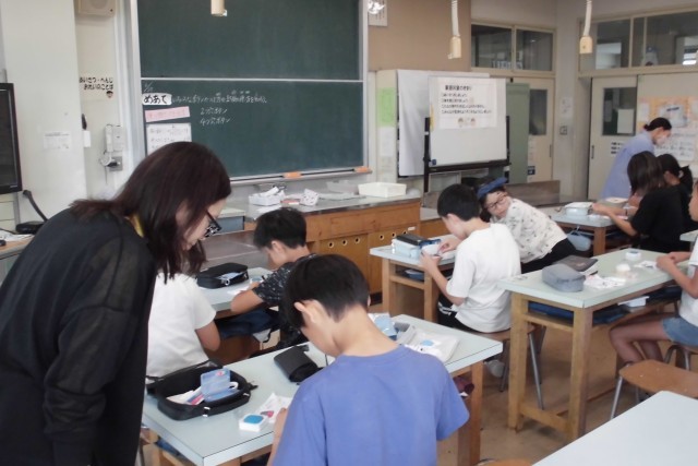 5年生は今ボタン付けの学習をしています。保護者のボランティアのみなさんも多数ご来校いただき、子どもたちの支援に入っていただいています。急なご連絡にもかかわらず、かけつけていただいた保護者の皆様本当にありがとうございます。みなさんのおかげで、みんなしっかりとボタン付けの練習をすることができました。今年のとどろきフェスタは展覧会です。手縫いの技能を活かした作品作りをしていきます。