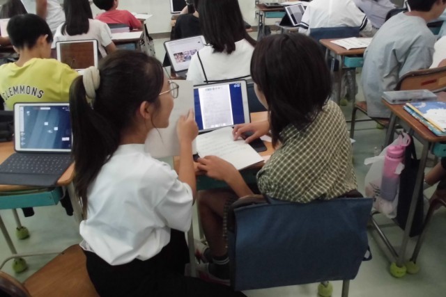 6年生は、自己紹介スピーチ学習をしています。5年生の時の経験を活かし、スピーチの内容、話す練習をして準備しています。友達に動画を撮ってもらい、振り返ったり、直接ペアの子からアドバイスをもらったりして、より良くなるように工夫しています。次回がスピーチの本場。笑顔で堂々とみんなの前でスピーチできるとよいですね。