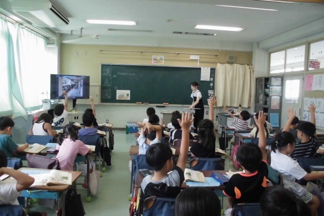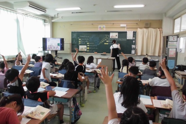 昨日の教室のロッカー周辺や廊下のフックのあたりの写真を見ると、ものがたくさん落ちています。きたない。危ないなどの感想をもちます。「クラスの大変身」という題材の挿絵を観ると、1枚目は、落書きがあったり、友達に嫌なことをしたりしている子がいます。2枚目の挿絵を観ると、みんなで仲良く話をしたり、きれいに整頓されたりしています。それぞれの様子を見てどんな気持ちになるか意見を交換し、「2年1組もすてきになりたい。」と考えることができました。早速片付けをしている子もいて、学んだことを直ぐに実践しています。