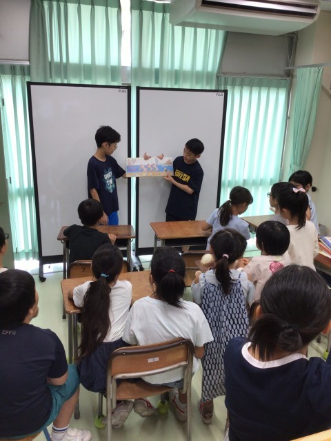 7月4日金曜日の中休みに、ブックコーナーで図書委員会の子どもたちによる読み聞かせの会が開かれました。