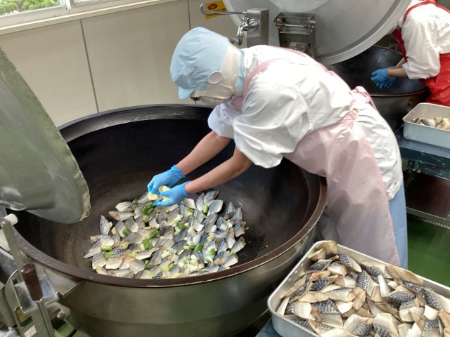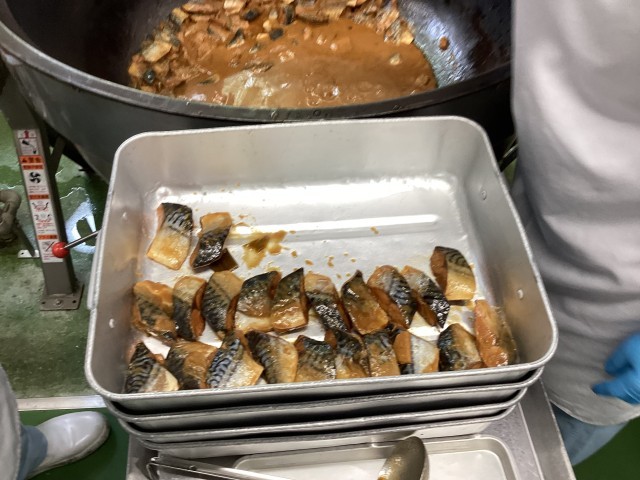 脂がのったサバが届き、調理さんが丁寧にねぎとしょうがとサバを並べて、弱火でじっくりコトコト煮てくださったので、とっても味が染みて美味しく出来上がりました。美味しい有機米ごはんが、より美味しくなりました。
