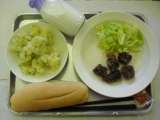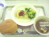 今日の給食(タイムスリップ献立)・屋上菜園のカリフラワーをいただきました。