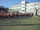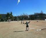 校庭を走り回っている二年生。経験が少なくなった凧あげをしています。自分で作った凧...
