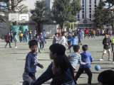 校庭で3年生が体育に取り組んでいました。ボールのゲームがもう少しで始まります。ル...