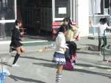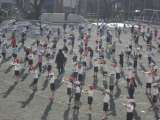 高学年は体育館で音楽、低学年は校庭でなわとびにとりくみました。
