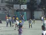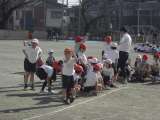 校庭で、すり抜け鬼を通してタグラグビーにむけての動きの練習をしていました。元気な...