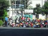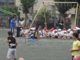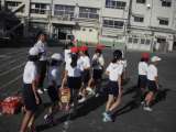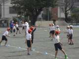 校門では、あいさつキャンペーン。校庭では6年生が、今日も、連合運動会に向けて朝連...