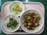 今日の給食は、ごはん、じゃこふりかけ、揚げ煮、野菜の甘酢かけ、牛乳です。じゃこふ...