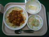 今日の給食は、チリビーンズライス、コールスローサラダ、りんご、牛乳です。今日のり...