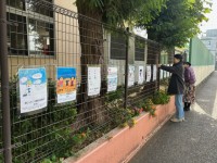夏休みに募集した「あいさつ運動」の啓発ポスターを、PTA役員の方々が掲示してくれ...