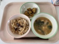 <献立>さんまごはん牛乳なめこのみそ汁さつまいもの含め煮