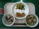 今日の給食は、豆入りひじきごはん、ししゃものごまフライ、シャキシャキ野菜、白菜の...