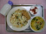 ☆今日の給食☆ えびピラフ 牛乳 イタリアンスープ フライドチキン 豆乳プリン...