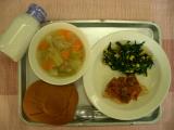 ☆今日の給食☆ 黒砂糖パン 牛乳 野菜スープ めかじきのマッシュルームソース ...