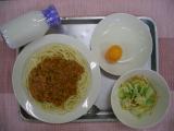 ☆今日の給食☆ スパゲティミートソース 牛乳 じゃがいものハニーサラダ きんか...