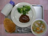 ☆今日の給食☆ バターロール 牛乳 パスタ入りスープ アップルチーズハンバーグ...