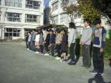 異学年で構成される班で担当清掃箇所を掃除します。この時期は落ち葉掃きも。一番最後...