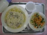 ★6年2組リクエスト給食★ カルボナーラ風スパゲティ 牛乳 パリパリサラダ 二...