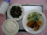 ☆今日の給食☆ ごはん 牛乳 二色フライ ゆで野菜 ひじきの煮つけ 今日の...