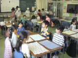 1年生がフルーツバスケットで遊んでいました。次の写真は6年生の国語の学習の様子で...